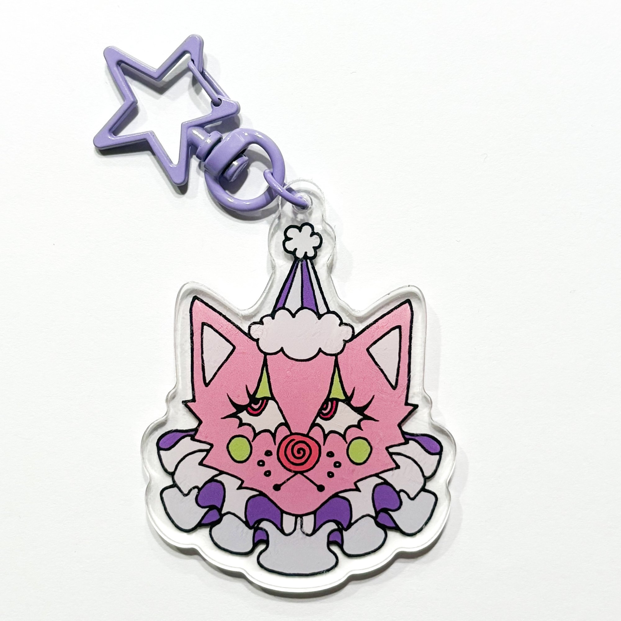 The circus is in town! Translucent acrylic keychain, with a fun purple star attachment. 2.5" double sided.