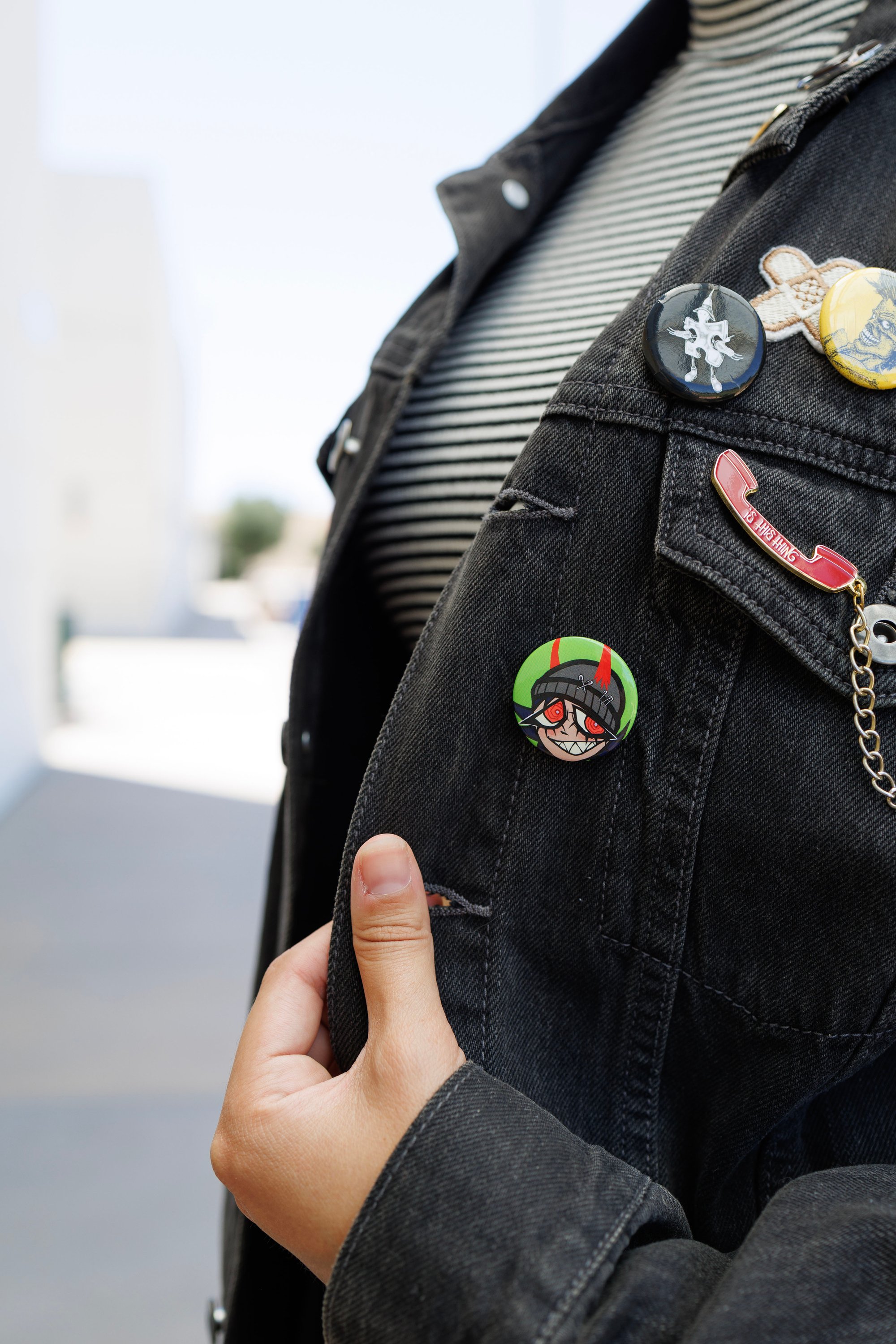 Unleash your inner demon with this mischievous little friend! She doesn't bite... This round, 32 mm pin is made out of a tinplate bottom with a glossy finish.