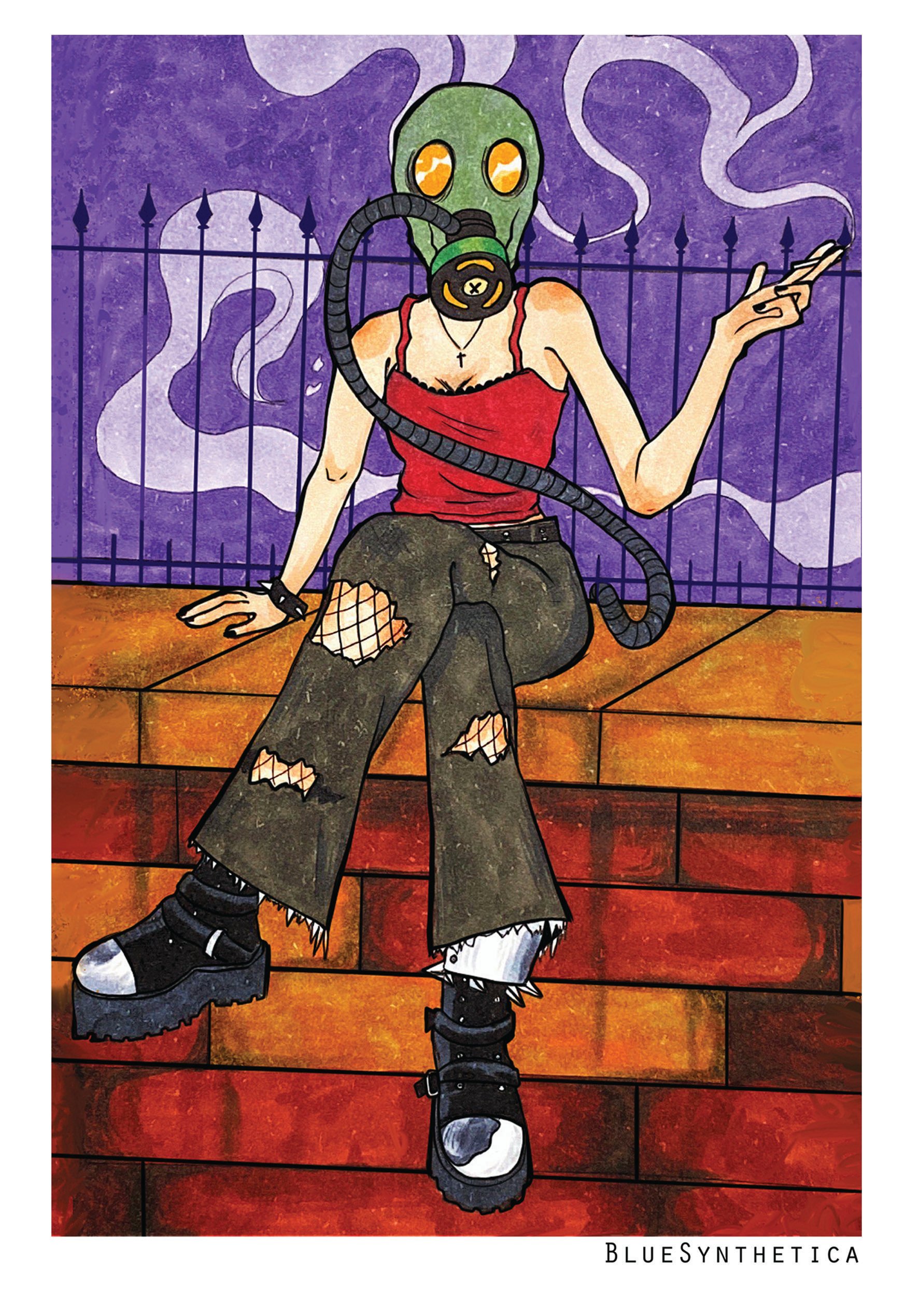 How can she even smoke when she has a mask on?? A5 print on glossy film. Frame not included.